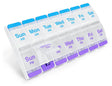 - The entire pill organizer is approximately 8.75" L x 4.5" W x 1" H.