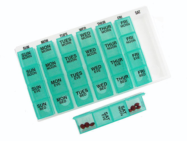 Weekly Pill Organizer with Tray Medium - Green is backordered and will ship as soon as it is back in stock.
