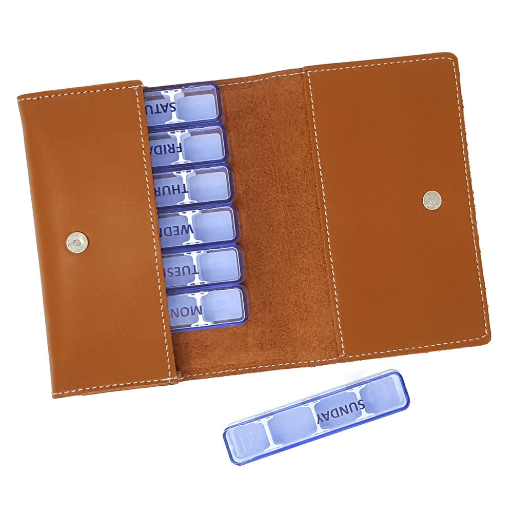 Kibodan Leather Pill Case Wallet - Weekly Pill Organizer