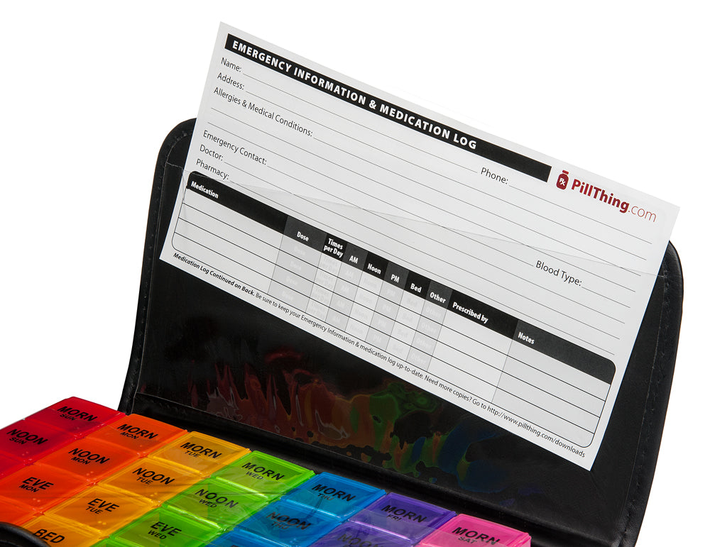 BONUS PILL CUTTER & MEDICATION LOG If you need an extra large pill case there’s a good chance a few pills you take might be on the large size. To help we include our DELUXE PILL CUTTER to make them a little easier to swallow. The pill splitter has a STRONG STAINLESS STEEL BLADE that easily and cleanly cuts your pills in half. The MEDICATION LOG stores in the case so you can keep a record of the medications you are taking