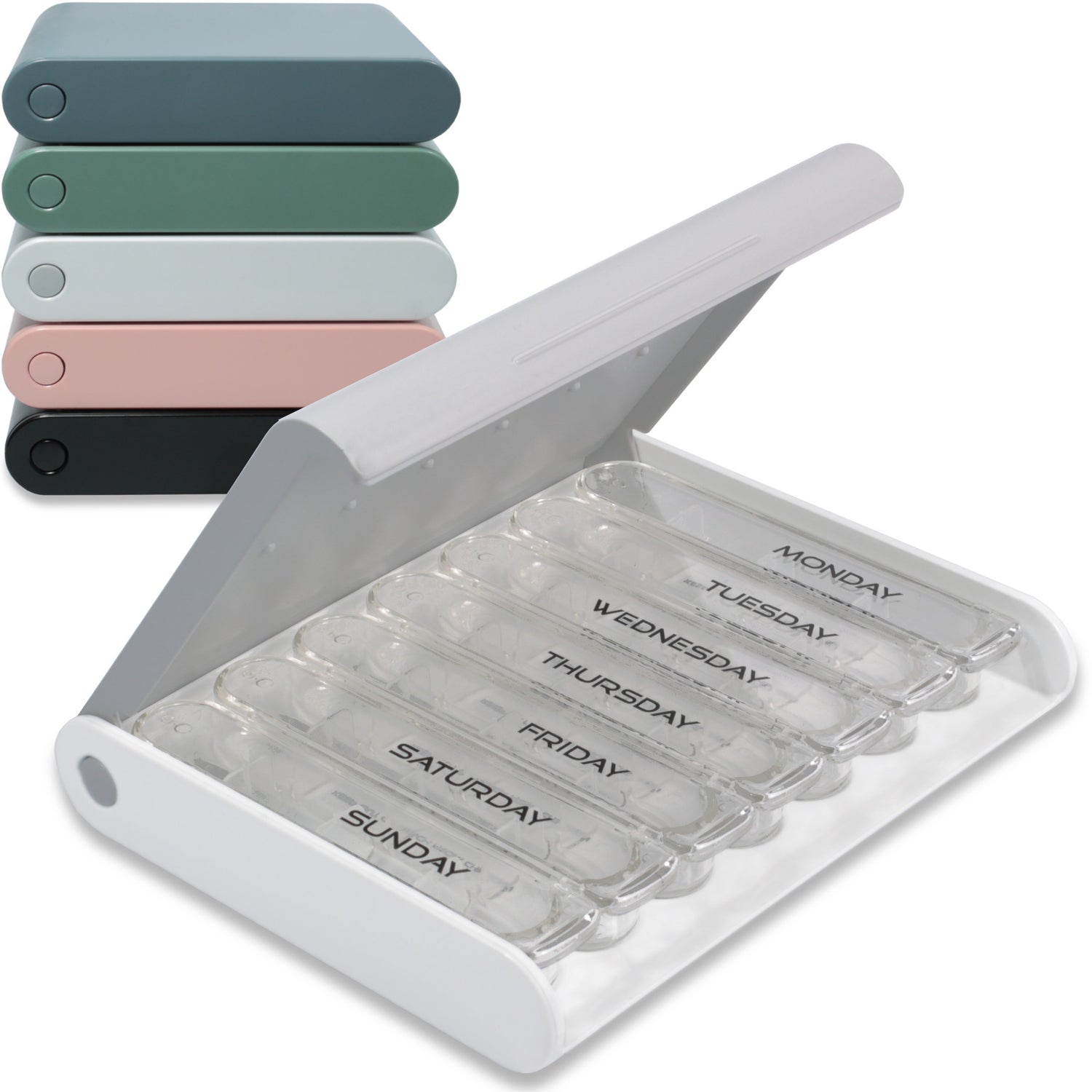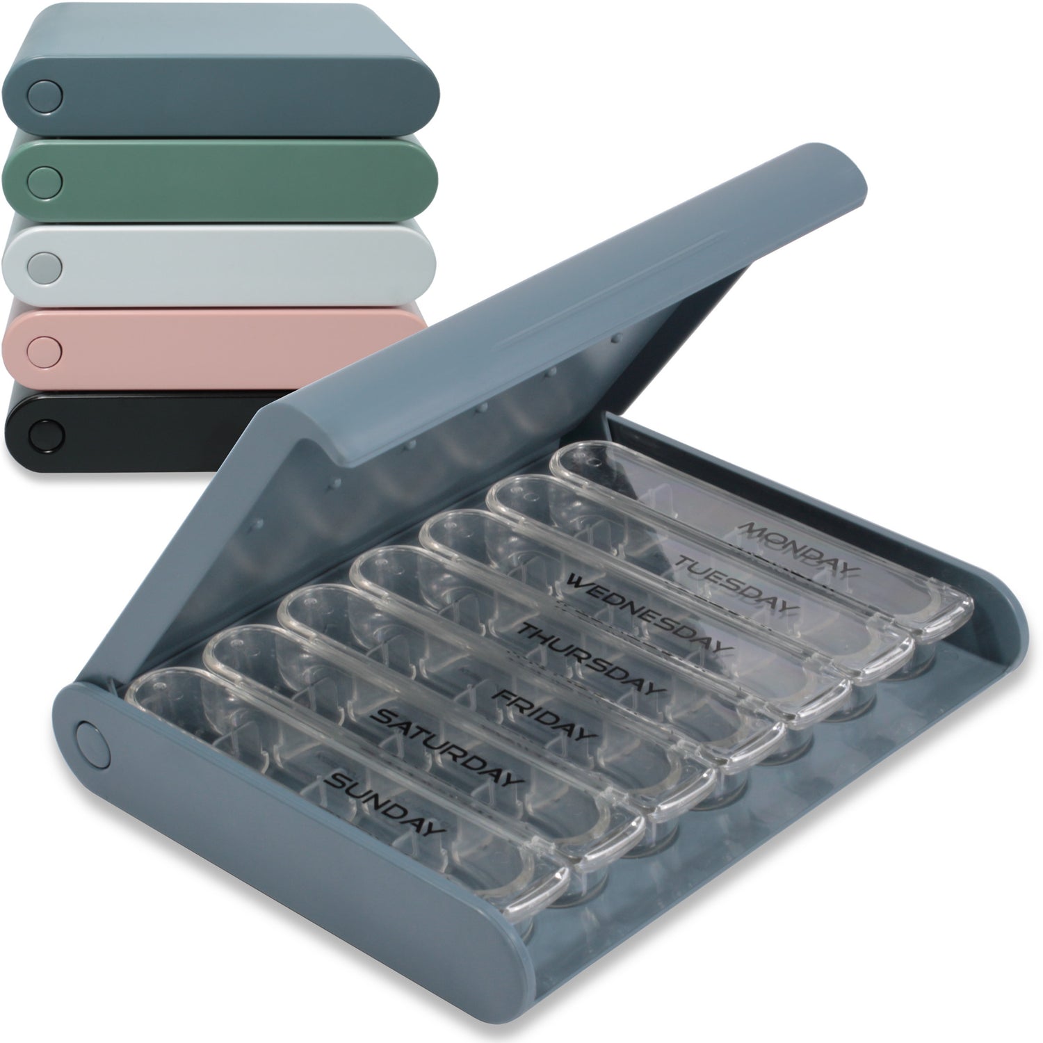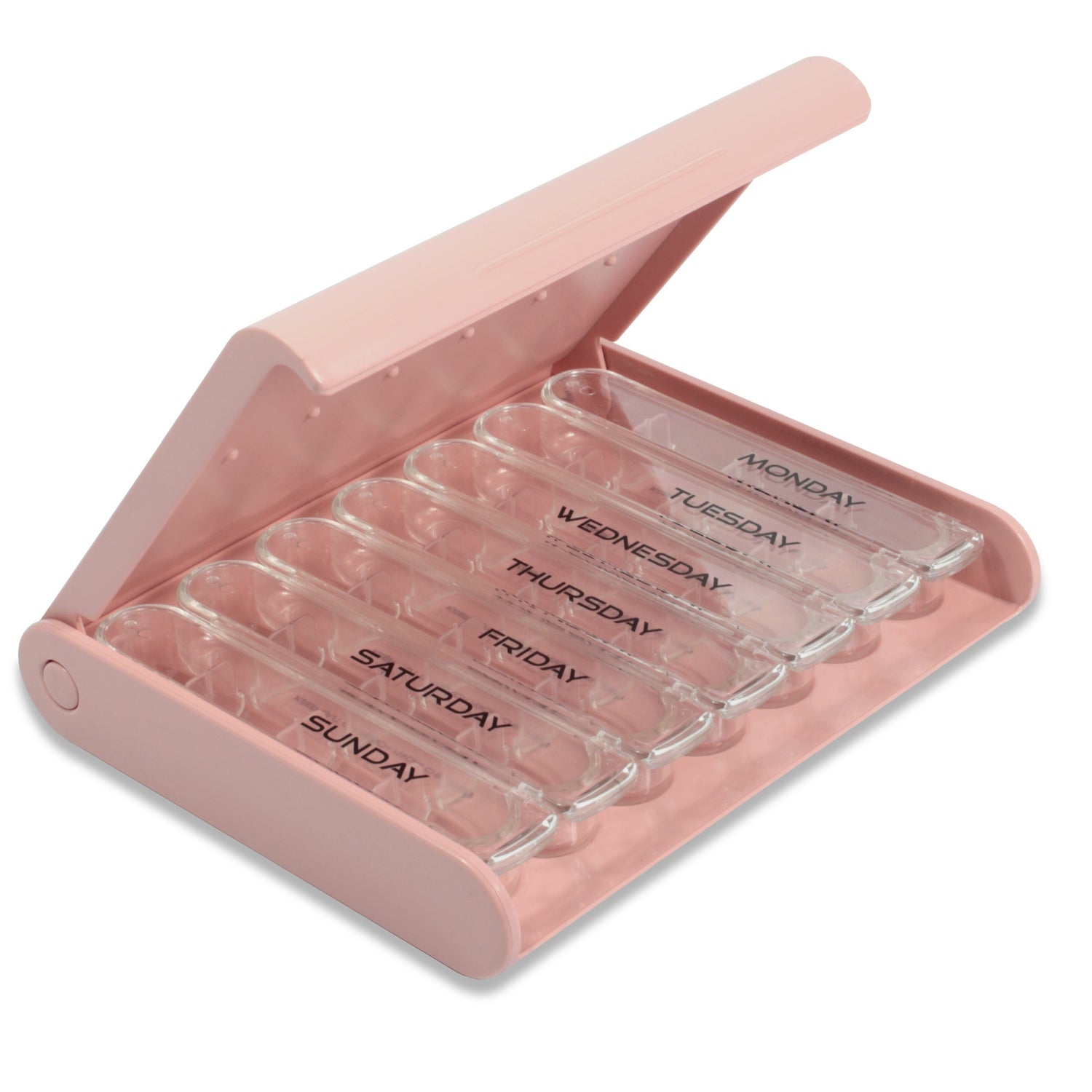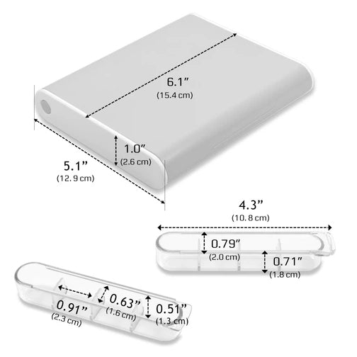 - Pill box for 7 days is lightweight and discreet, which makes ideal to use at home, at the office, abroad, etc.