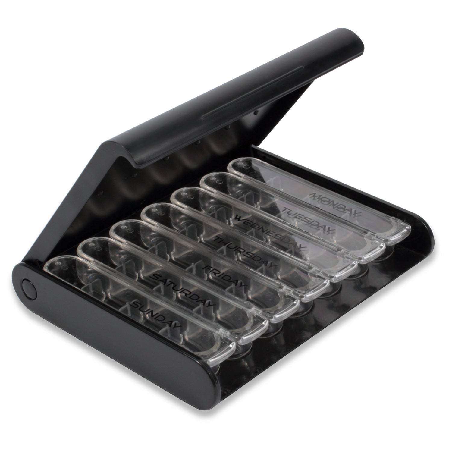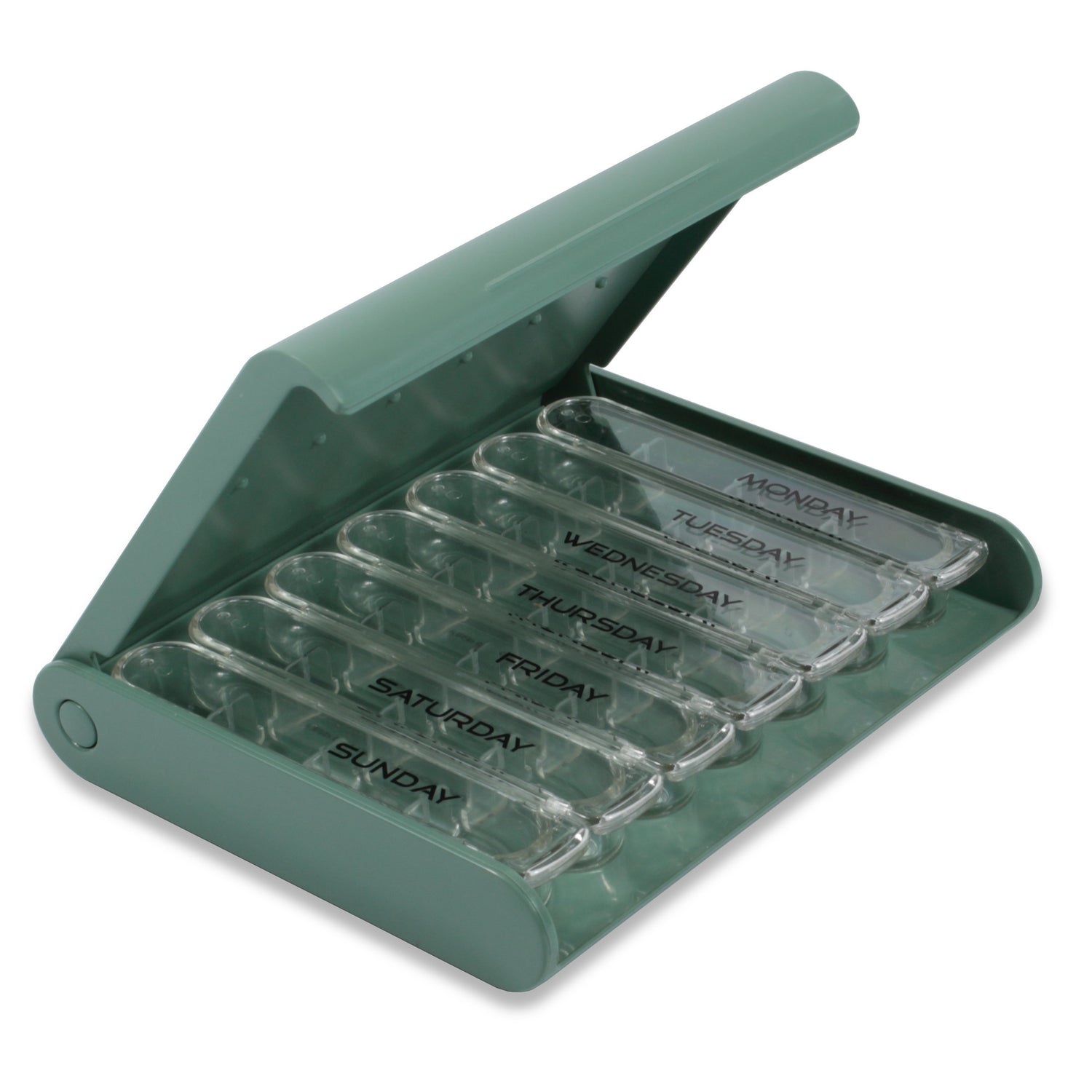 - The 24/7 MEDICASE pill box has 7 dispensing boxes - one for each day of the week. The dispensers are divided into 4 compartments to allow for up to 4 doses per day.