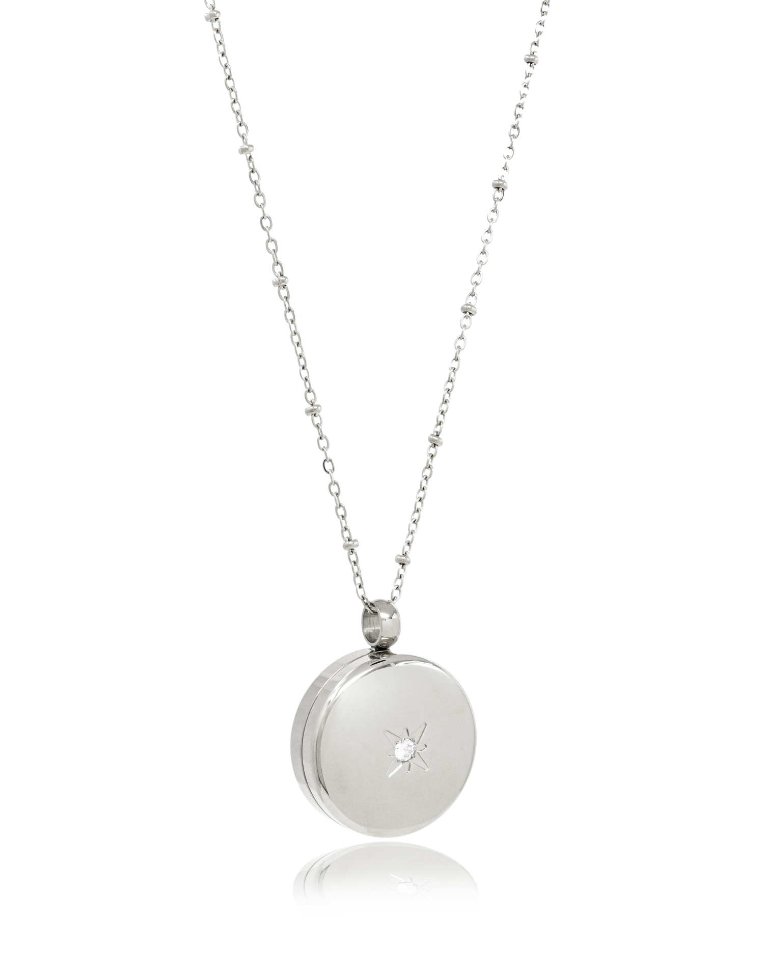 Keep your Important and Emergency meds safe, secure and with you! This beautiful Round Pill Locket Necklace has an O-ring seal that will keep moisture out! Comes with a beautiful Star and Cubic Zirconia in the center.