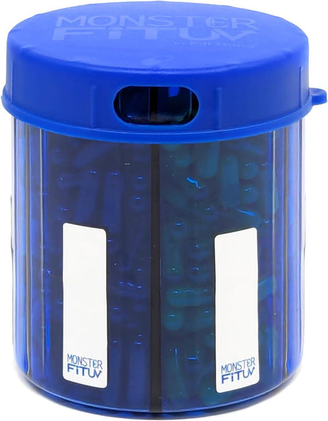 Monster Jr UV Protected Blue Pill Dispenser with Compartment Labels (1 or 2 Pack)