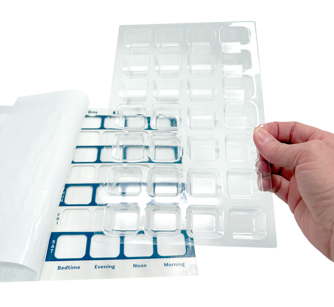 Weekly XL, 4 Time a Day, Cold Seal Medication Blister Cards - Tri-Fold Booklet