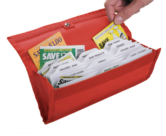 Deluxe Coupon Organizer makes it easy to keep your coupons organized and it snaps on to your shopping cart so your coupons are always at your fingertips!