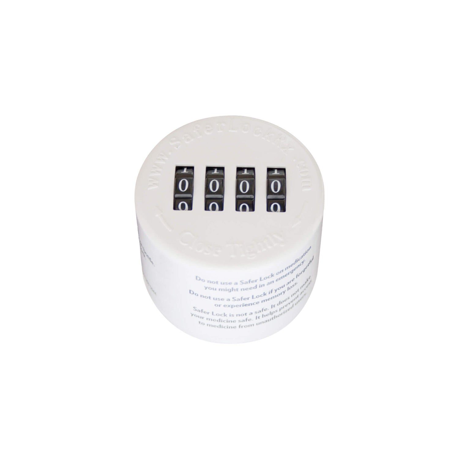 The Safer Lock uses a four-digit combination locking cap that can be used on the included Safer Lock bottle or your existing prescription bottles. You choose the combination and set the lock. The right combination is needed to open a bottle once it has been secured with a Safer Lock.