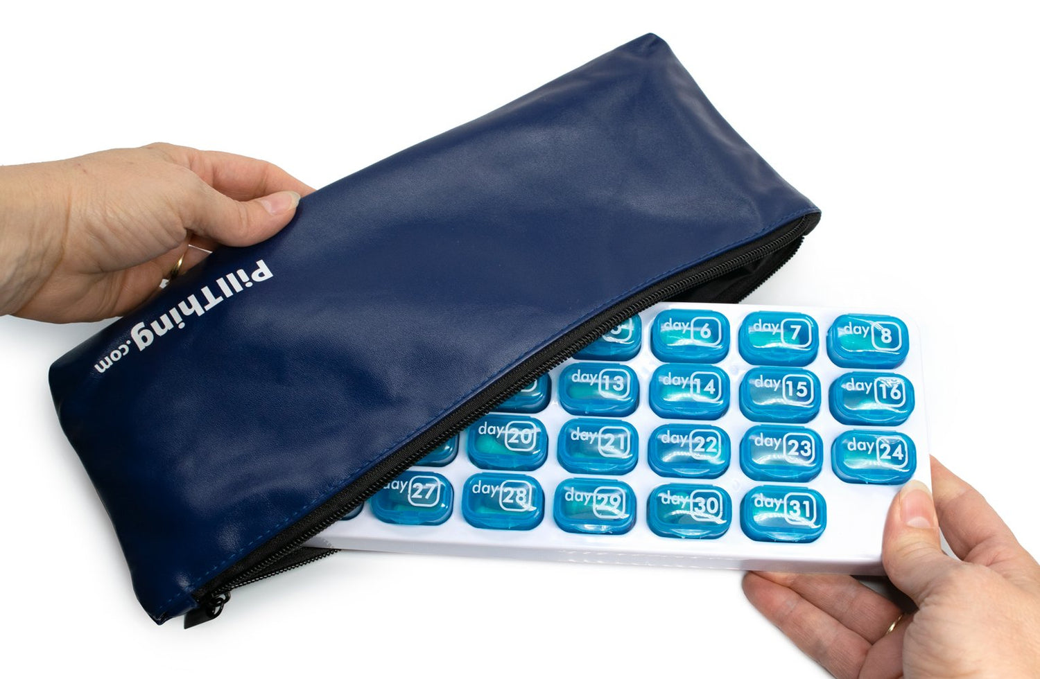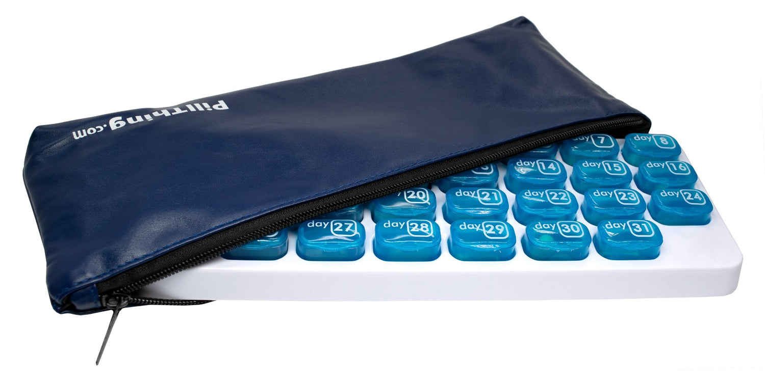 - OUR BEST SELLING PILL ORGANIZER NOW AVAILABLE WITH A ZIPPERED TRAVEL CASE! (CASE & PILL PODS) Our case is designed specifically for our 31 Day Pill Pods Organizer. Pods will not fall lout when traveling in the case. Pill pod tray is easy to insert and remove from the secure travel case.