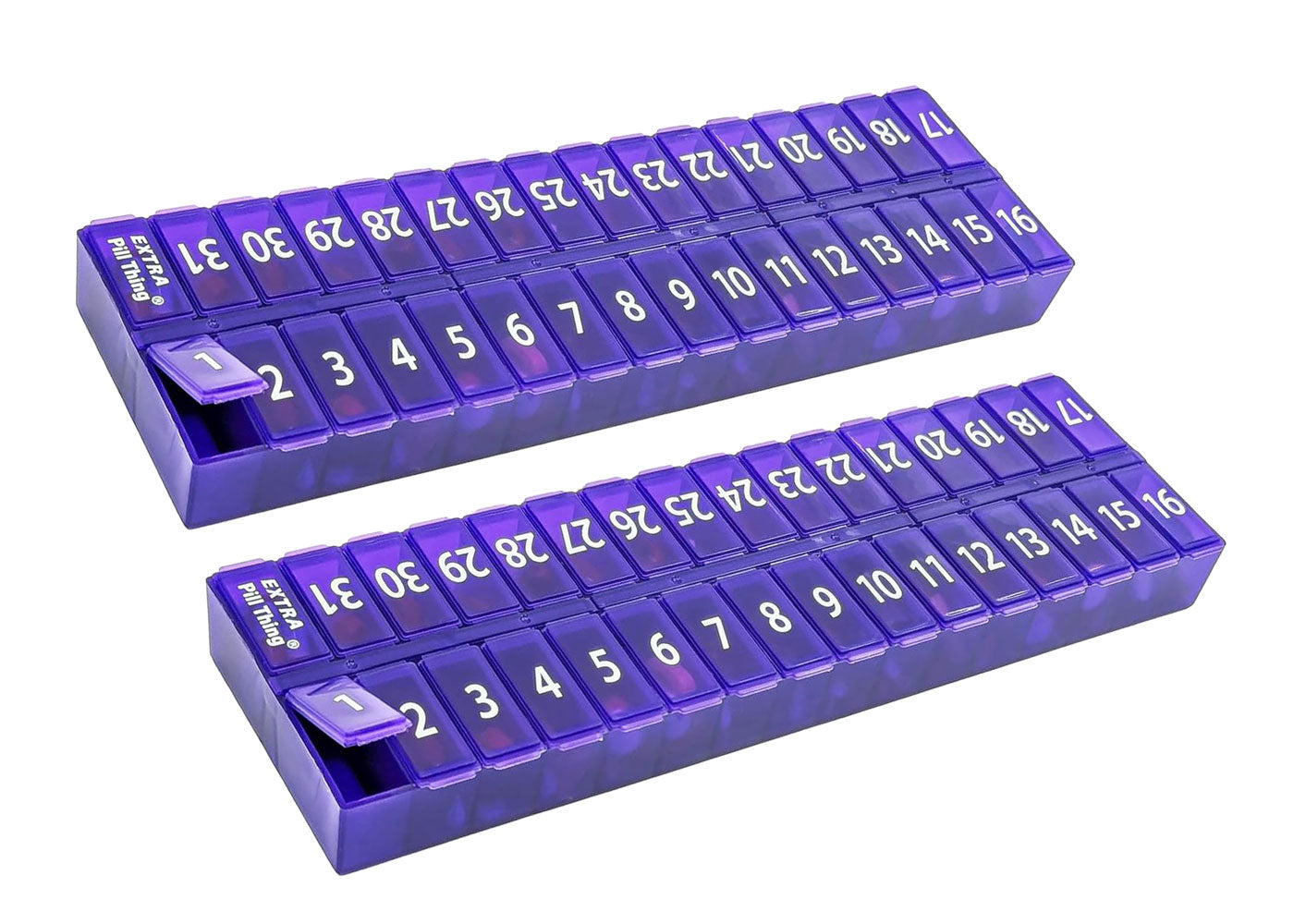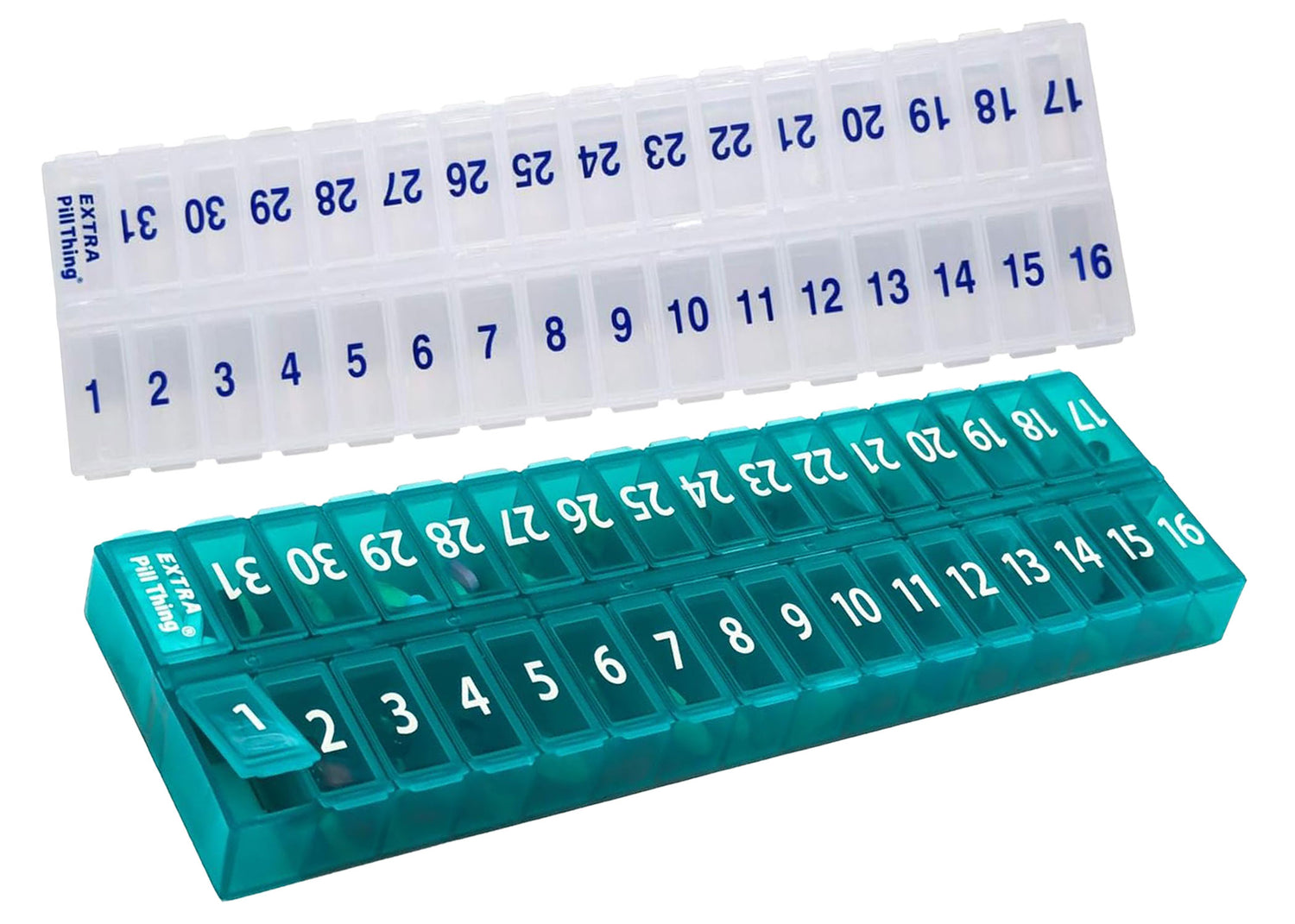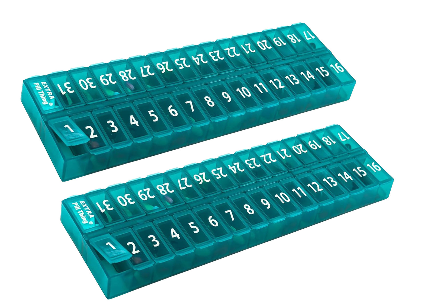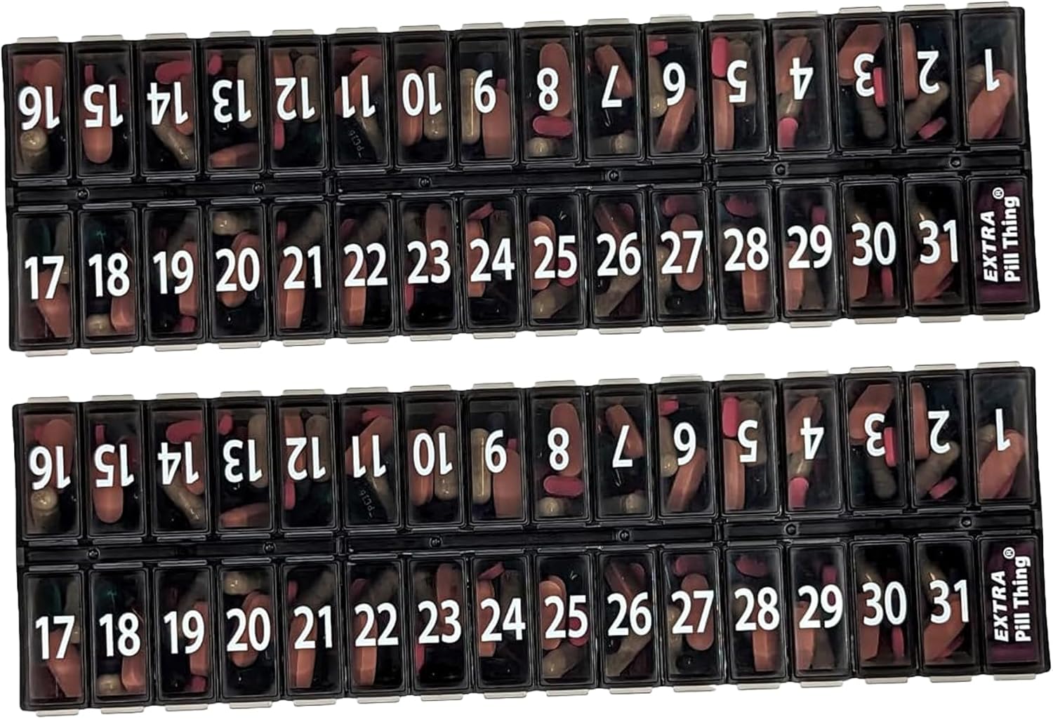 - 31 numbered compartments corresponding to the days of the month.