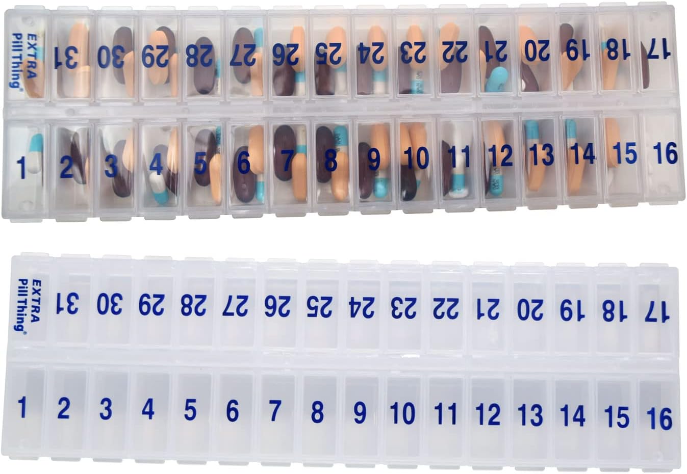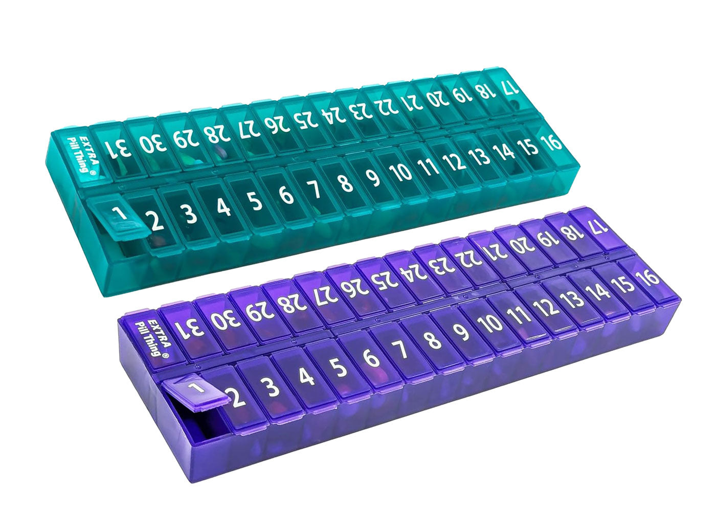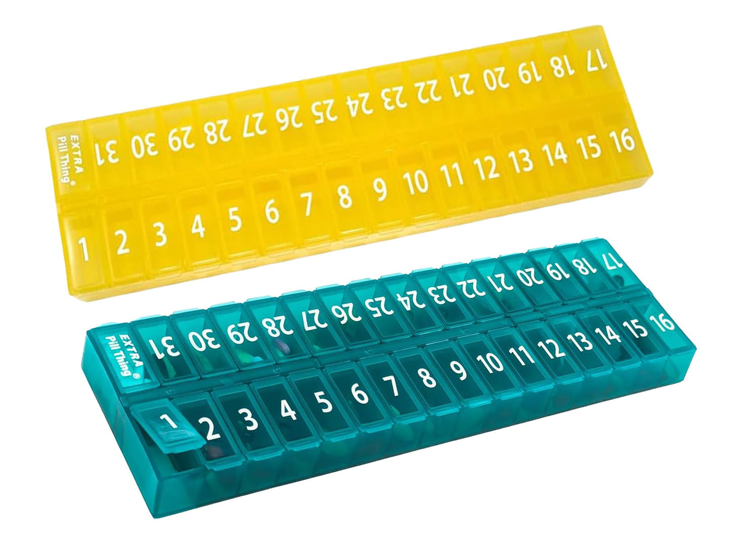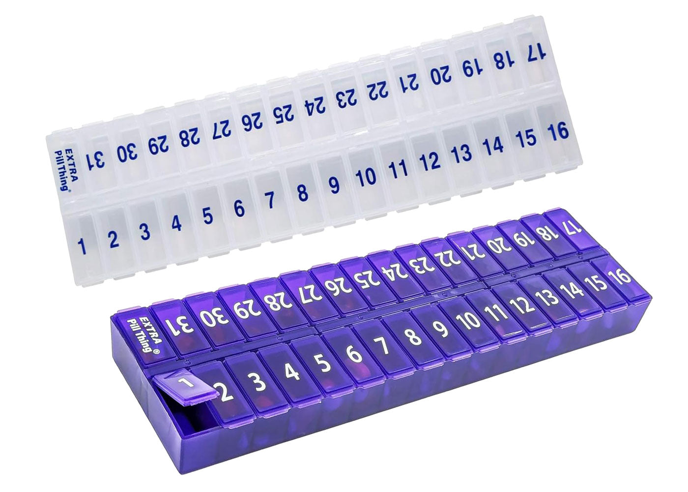 - 31 numbered compartments corresponding to the days of the month.