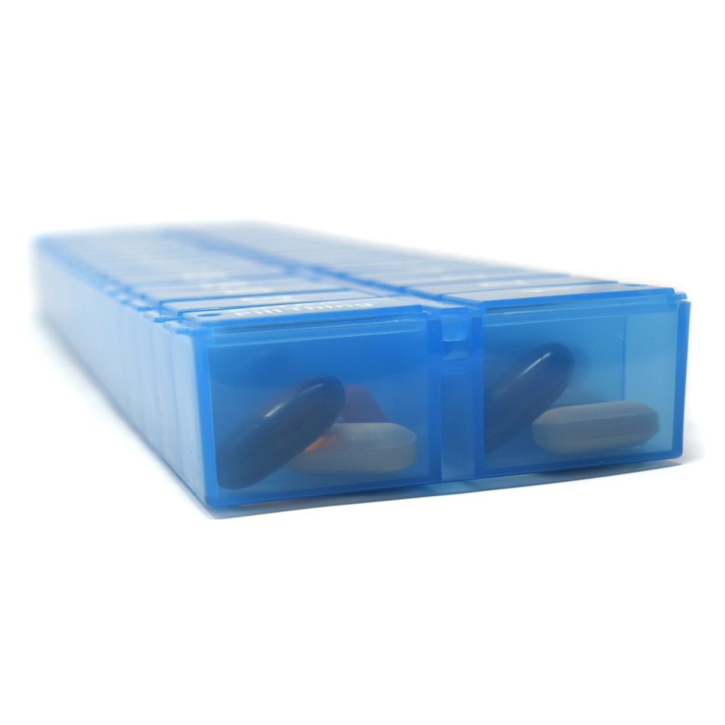 One of our most popular pill organizers now available as a set for AM/PM medications! Or use the different colors to indicate whose medication is in the organizer.