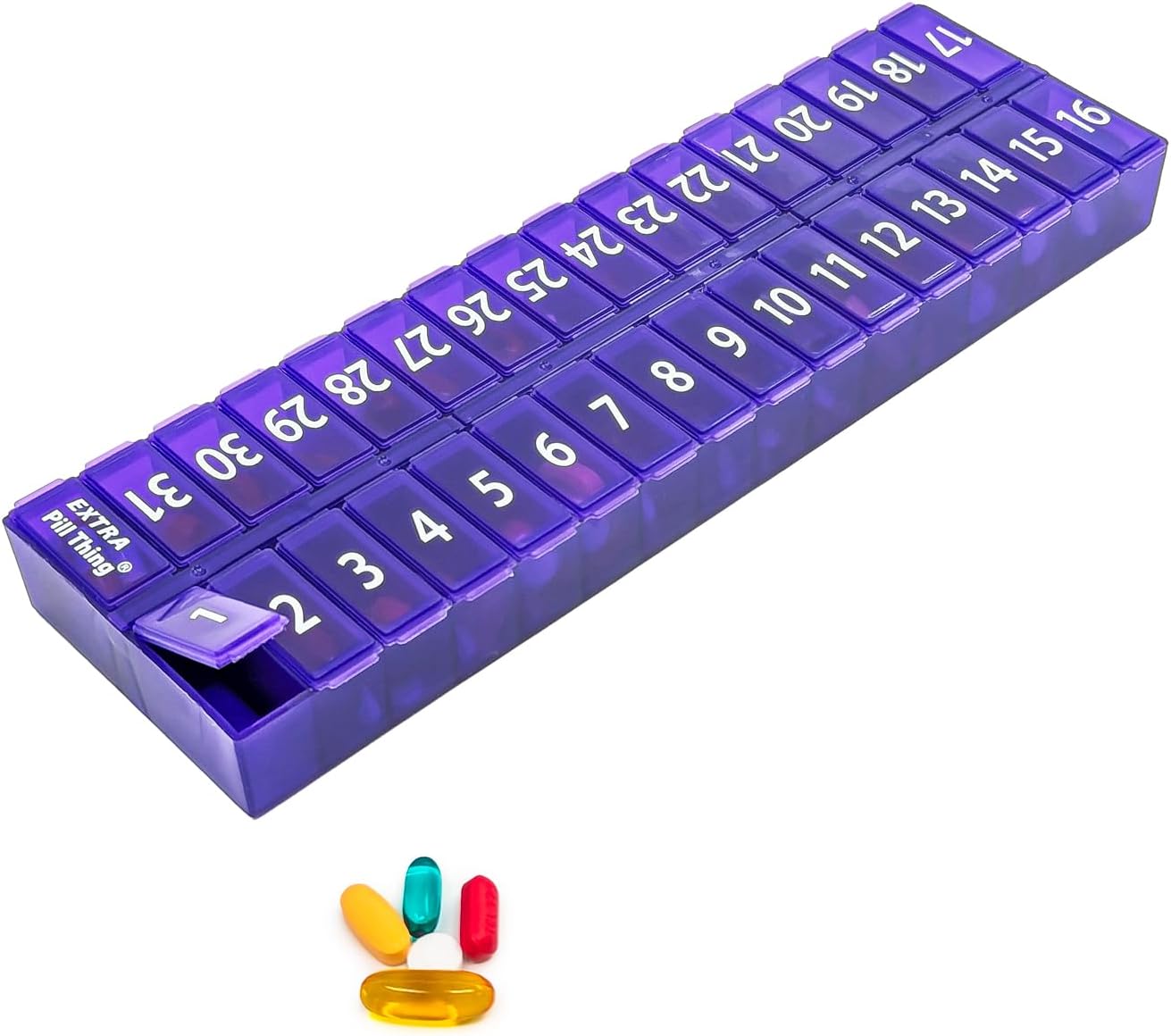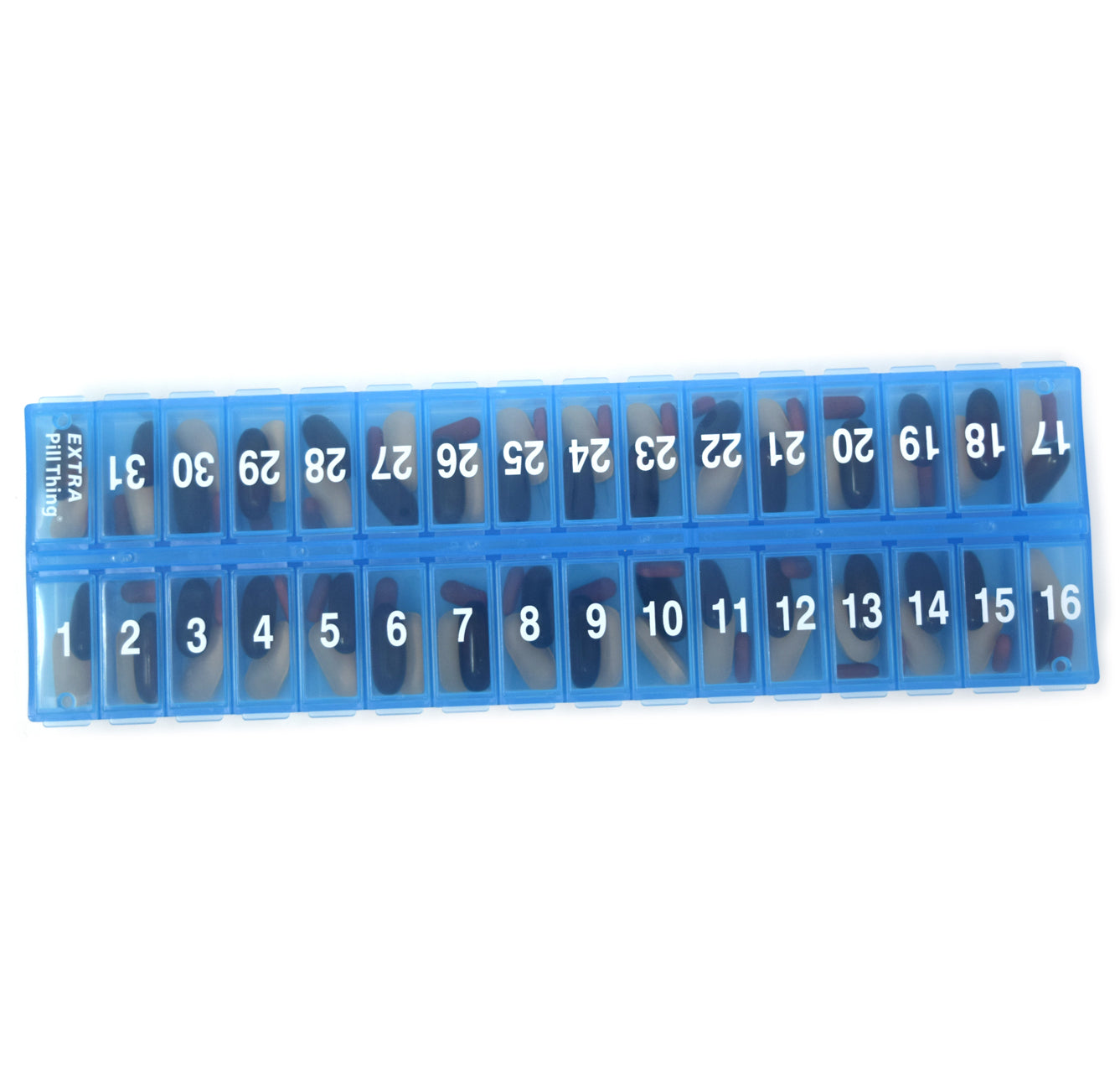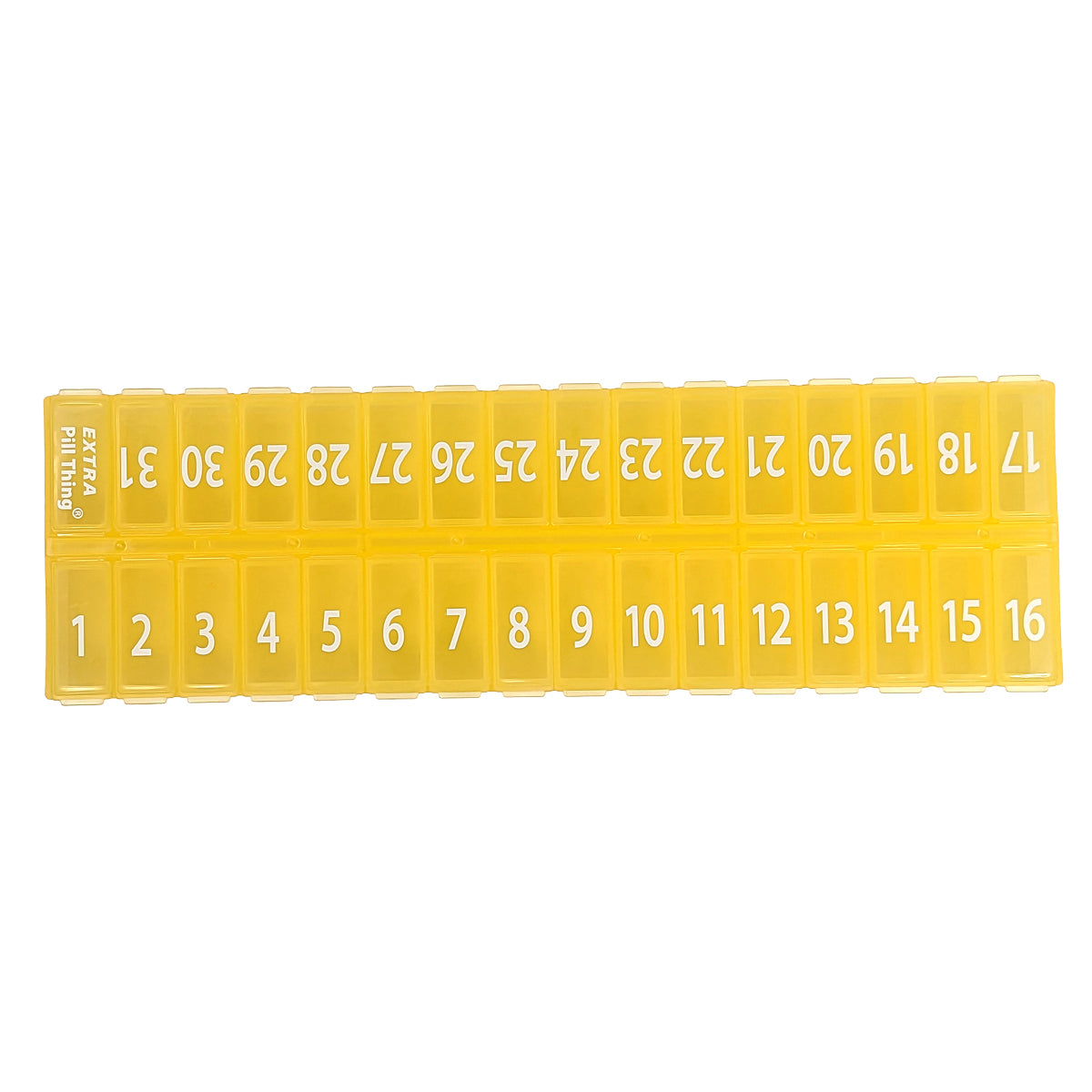 - 31 numbered compartments corresponding to the days of the month.