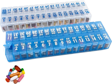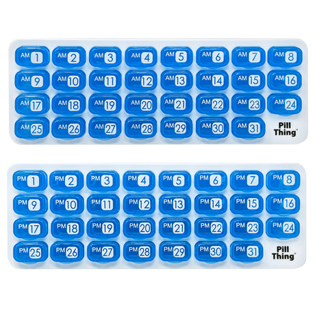 AM/PM 31-Day Monthly Pill Organizer Pods - Blue & Grey