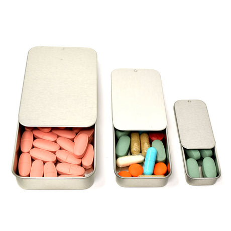 Round Silver 3-Compartment Pill Box with 2 Pill Box Key Rings