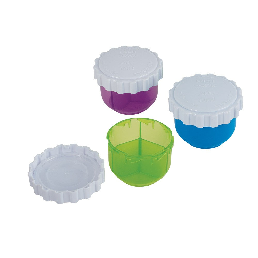 The 3-Compartment Pill Vial has a durable, no-spill design. The twist vial cap keeps your medications secure and contains 3 deep compartments to fit all pill sizes. The portable size makes it easy for travel or home use.