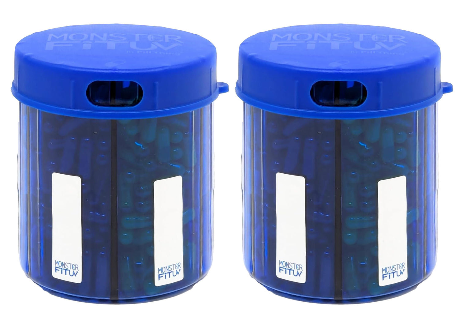 Monster Jr UV Protected Blue Pill Dispenser with Compartment Labels (1 or 2 Pack) - 1 Pack is backordered and will ship as soon as it is back in stock.