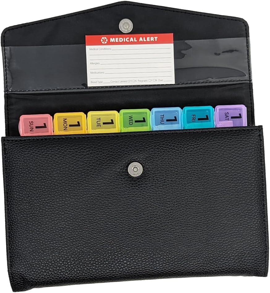 - Additional Storage Space: By positioning the pill boxes on their sides, you gain an extra 3 x 6.75 inches of storage area within the case. This space can be used to store various non-pill medications such as drops, ointments, inhalers, or a collapsible cup, pill cutter, and more, ensuring you have all necessary medications readily available for your next dosage.