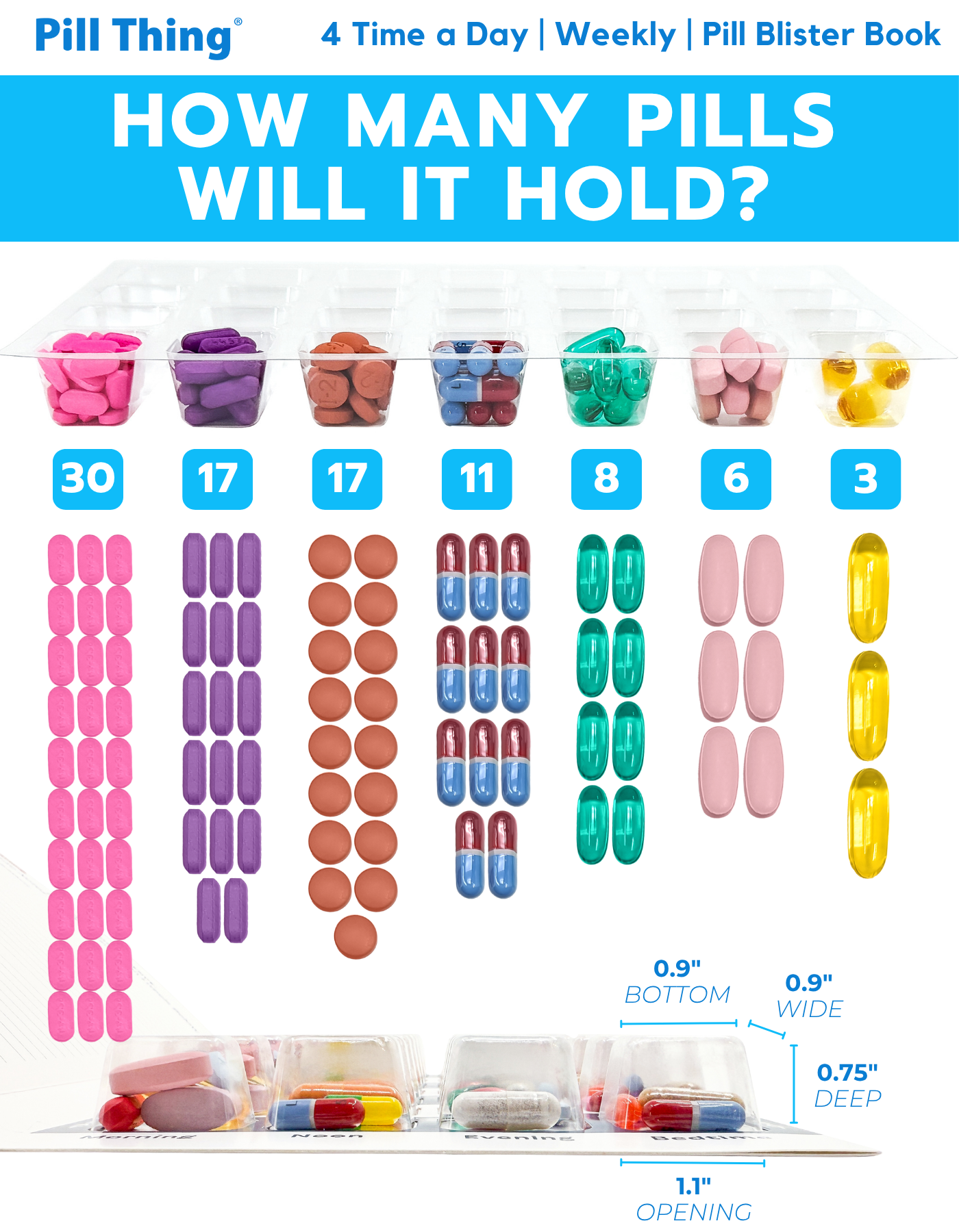 - Blister Size: 1.1" x 0.9" x 0.75" deep