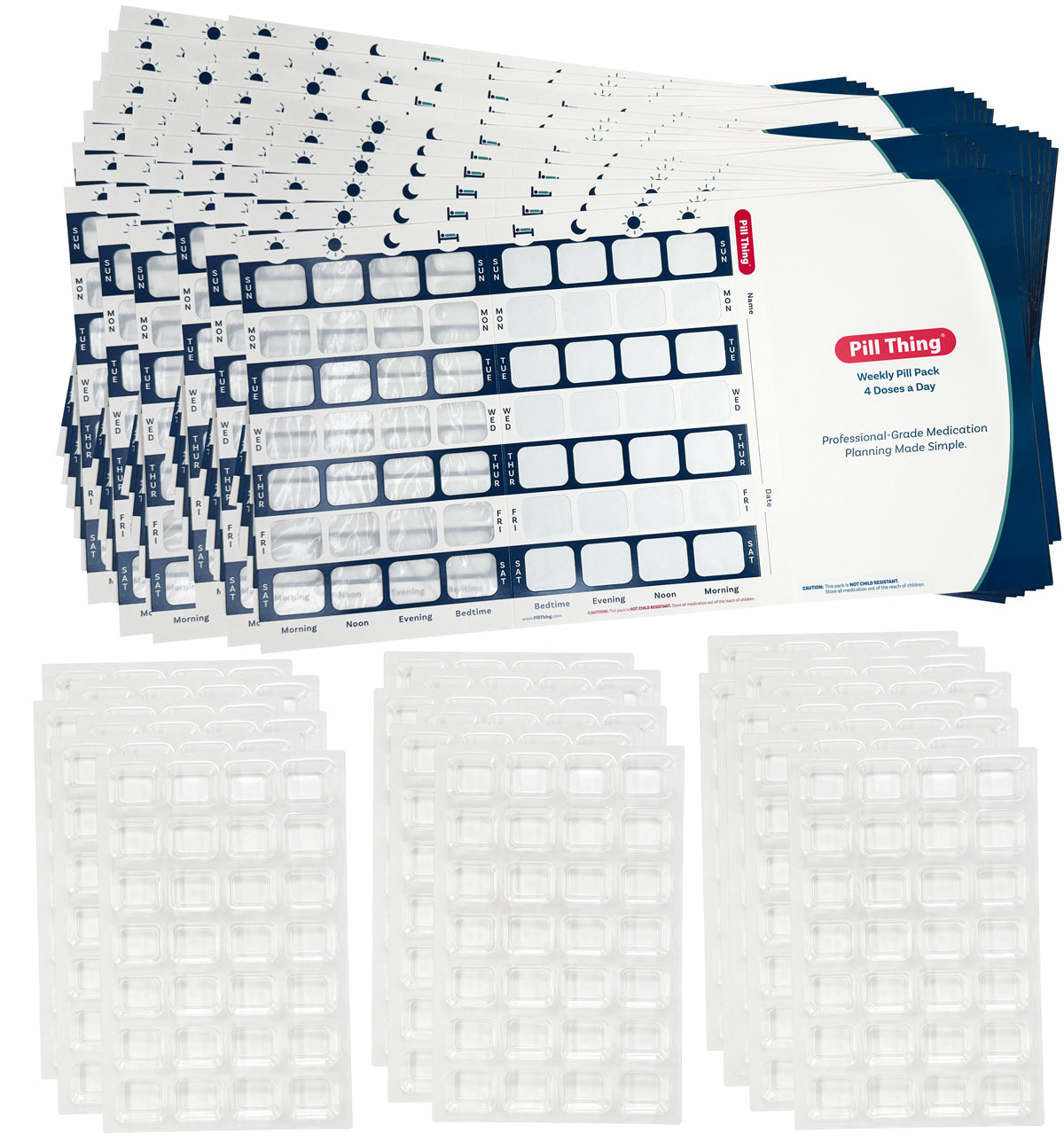 4 Times a Day Weekly XL Cold Seal Pharmacy Blister Pack System Cards for Pills - 100 Pack