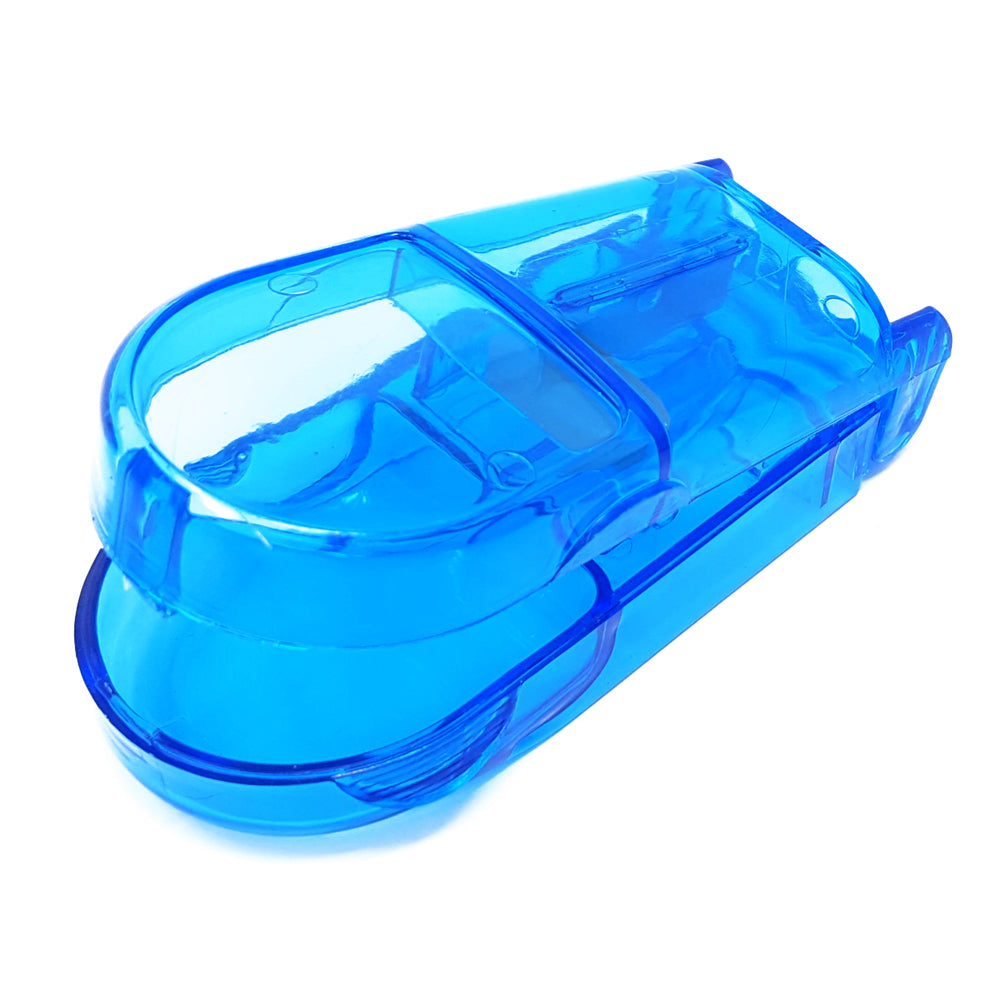 The Deluxe Pill Cutter Splitter with Built in Pill Case uses a strong stainless steel blade so it easily and cleanly cuts medication doses in half.