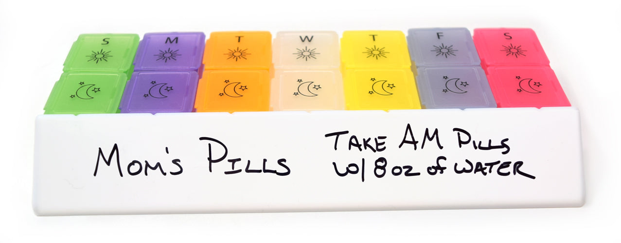 Our MedWrite line of medication organizer products gives you an area to clearly write notes regarding the medications in the organizer or a reminder note to the person who is taking them.