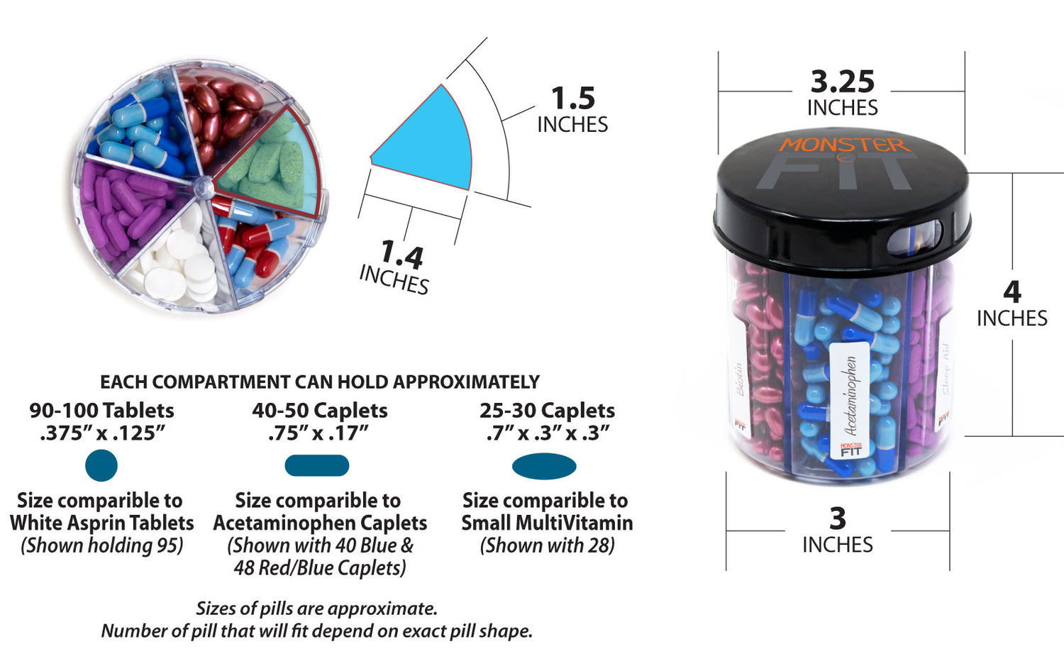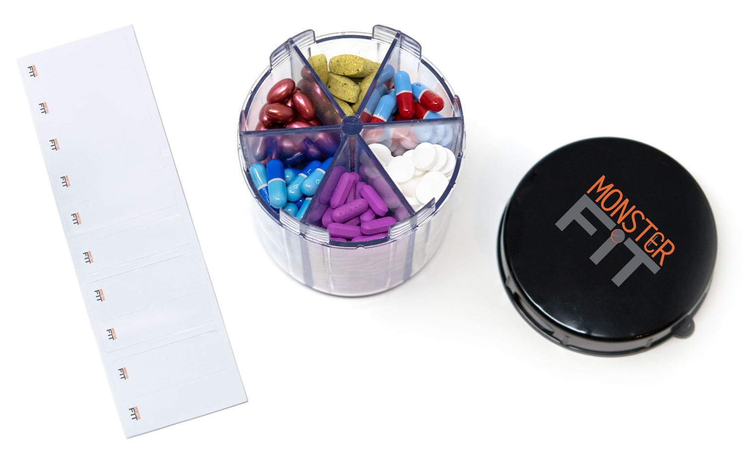 Monster Jr Pill Dispenser with Compartment Labels