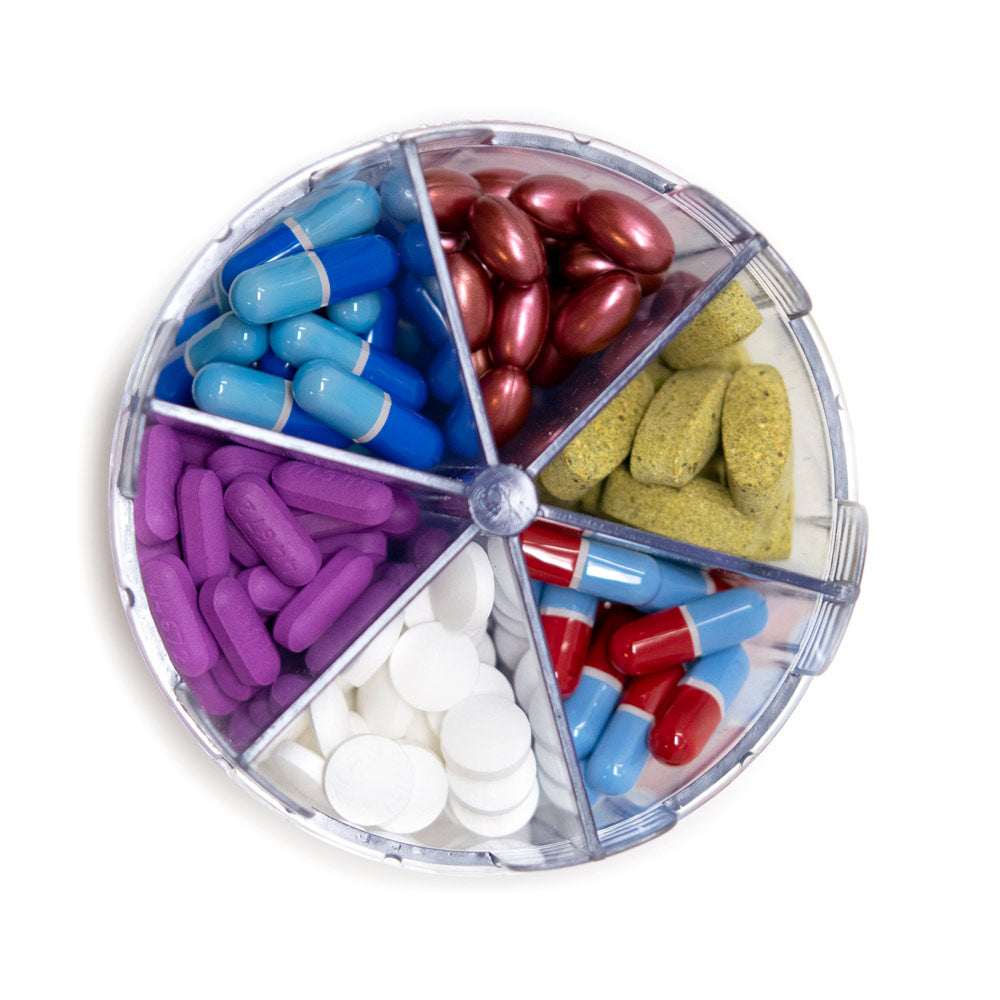 - Six compartments will accommodate most small to medium size pills.