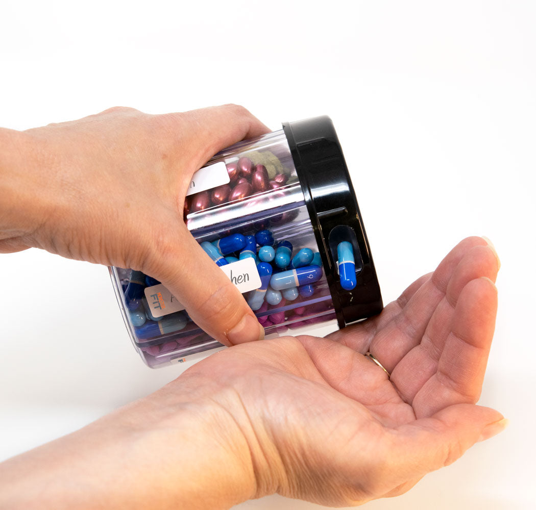 Organize your medications or supplements in this one convenient pill dispenser.