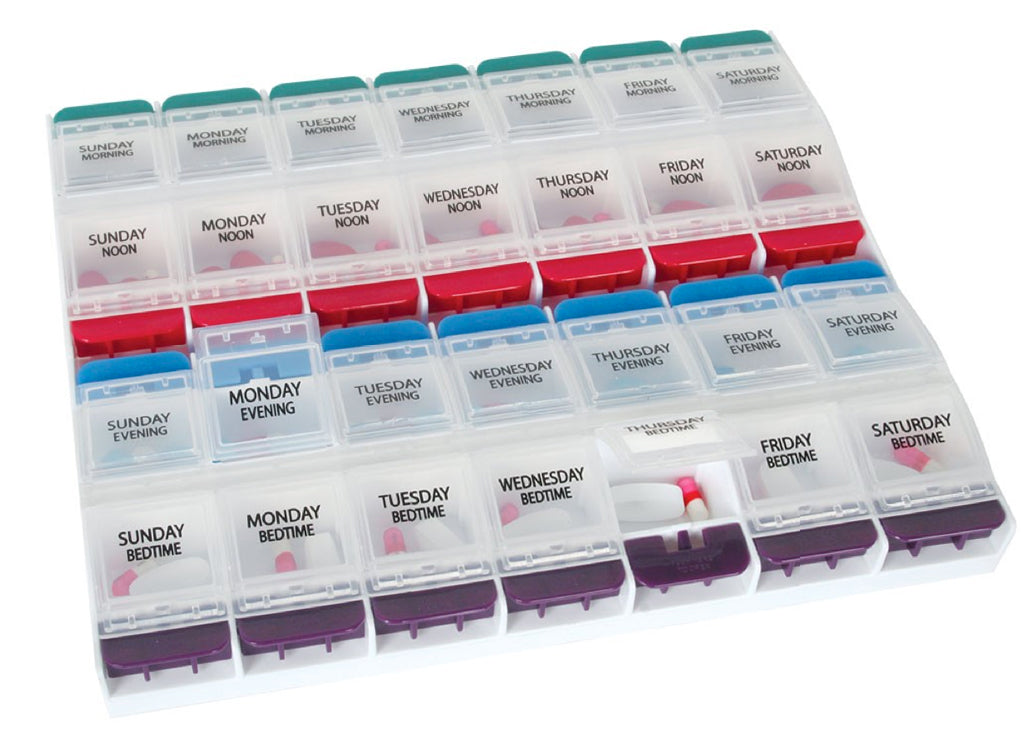 - Each day has 4 compartments for 4 daily doses
