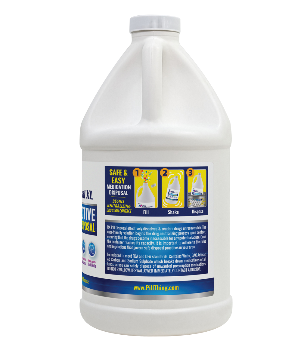 - Generous Half-Gallon Capacity: Our RX Pill Disposal solution system boasts an impressive half-gallon (64 oz) bottle, making it an ideal choice for clinics, hospitals, and healthcare facilities with high medication disposal needs. Formulated to meet FDA and DEA standards.